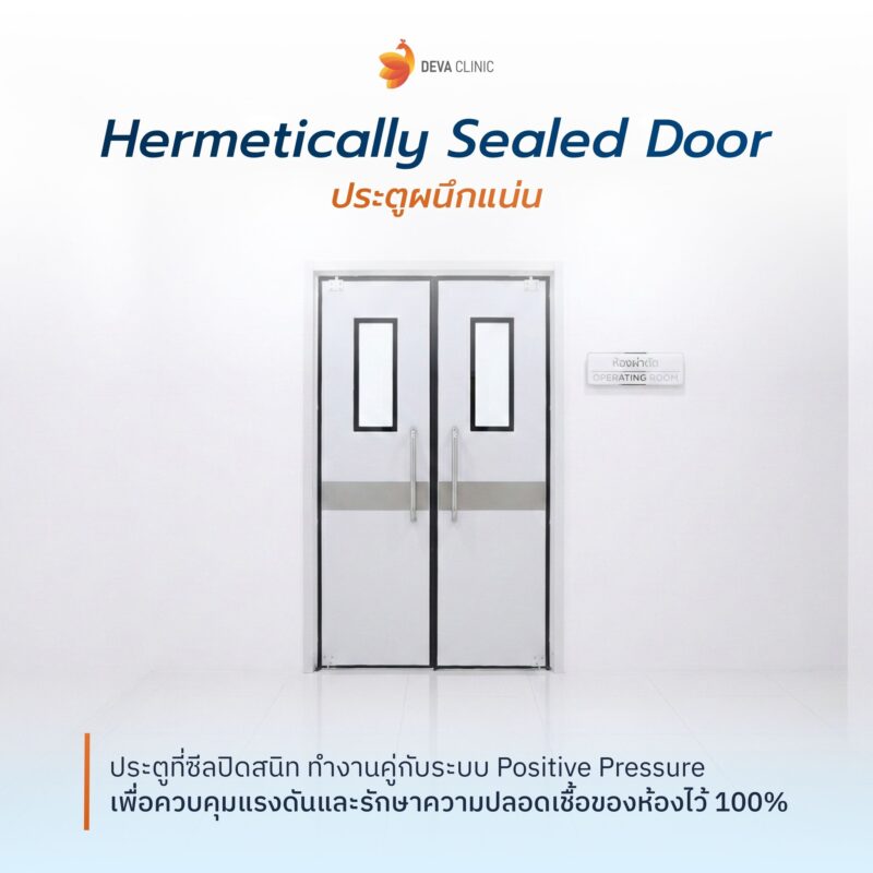 ประตูห้องผ่าตัดที่ออกแบบมาเพื่อปิดสนิท ป้องกันอากาศรั่วไหลและช่วยรักษามาตรฐานความสะอาดและความดันภายในห้องให้คงที่