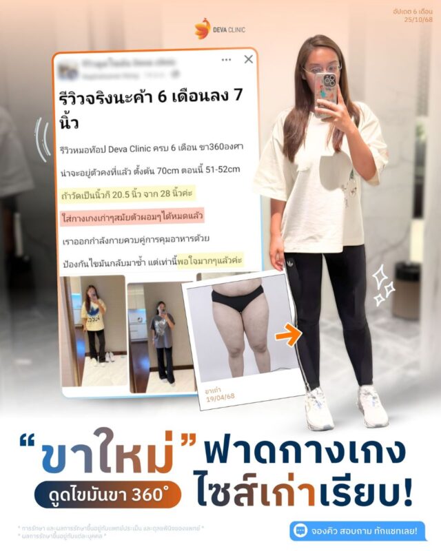 ความมั่นใจของผู้หญิงเริ่มต้นที่เรียวขาสวย โดยเฉพาะเทรนด์ “ขาตะเกียบ” ที่ดูเพรียวบางและใส่ชุดอะไรก็ดูโดดเด่น Deva Clinic นำเทคนิคการออกแบบสรีระระดับพรีเมียมมาช่วยเนรมิตขาในฝันให้คุณ โดยไม่ต้องบินไปไกลถึงเกาหลี