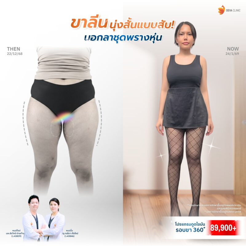 ที่ Deva Clinic เราเน้นการ ดูดไขมันต้นขาแบบ 360 องศา เพราะคือทางลัดที่ตอบโจทย์ที่สุดสำหรับคนที่ต้องการผลลัพธ์ที่ชัดเจนและรวดเร็ว เพื่อเนรมิตเรียวขาสวยสมส่วน ให้คุณกลับมาสนุกกับการแต่งตัวและโชว์เรียวขาได้อย่างมั่นใจในทุกชุด