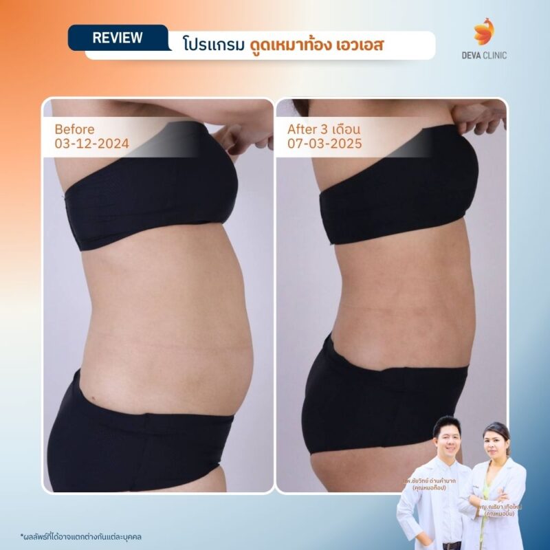 ผลลัพธ์จากเคสจริงที่ Deva Clinic แสดงให้เห็นว่า แม้จะดูดไขมันออกไปในปริมาณมาก แต่ผิวหนังยังคงเรียบเนียน และที่สำคัญคือ “หาแผลไม่เจอ” ทำให้คนไข้สามารถกลับไปใส่เสื้อโชว์หลัง เสื้อครอป หรือบิกินี่ได้อย่างมั่นใจ 100%