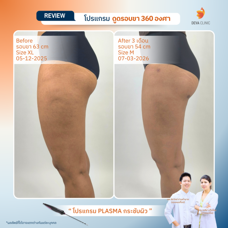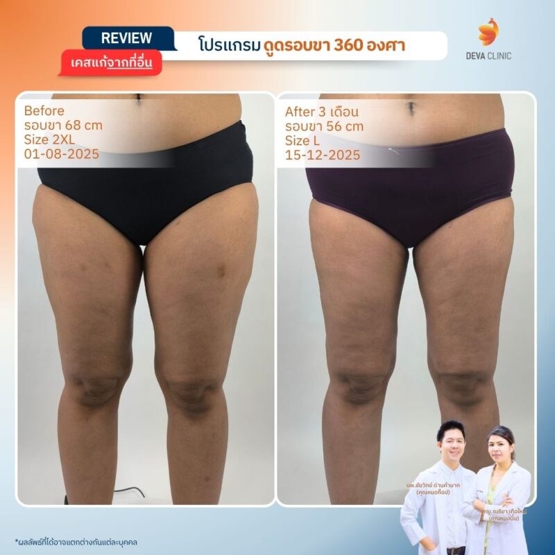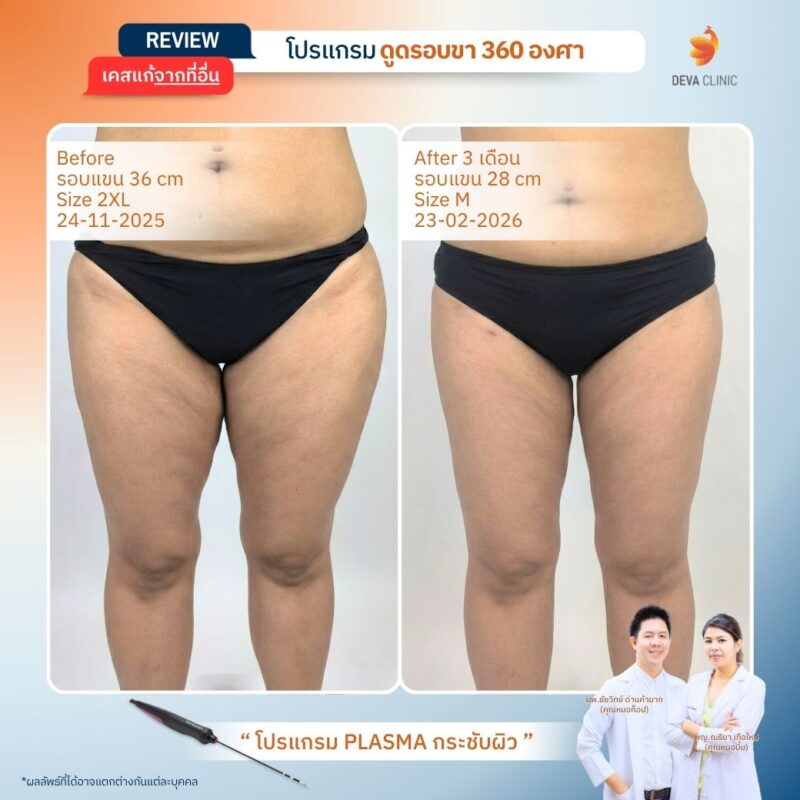 รีวิวดูดไขมันต้นขา Deva Clinic | รวมเคสจริง ก่อนทำ-หลังทำ
