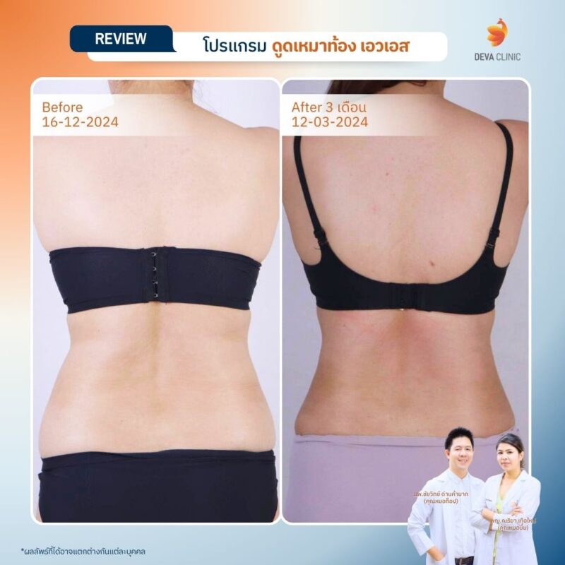 หลังเข้ารับการดูดไขมันหน้าท้อง และ ดูดไขมันเอว ที่ Deva Clinic ความเปลี่ยนแปลงที่เกิดขึ้นนั้นน่าทึ่งมาก: